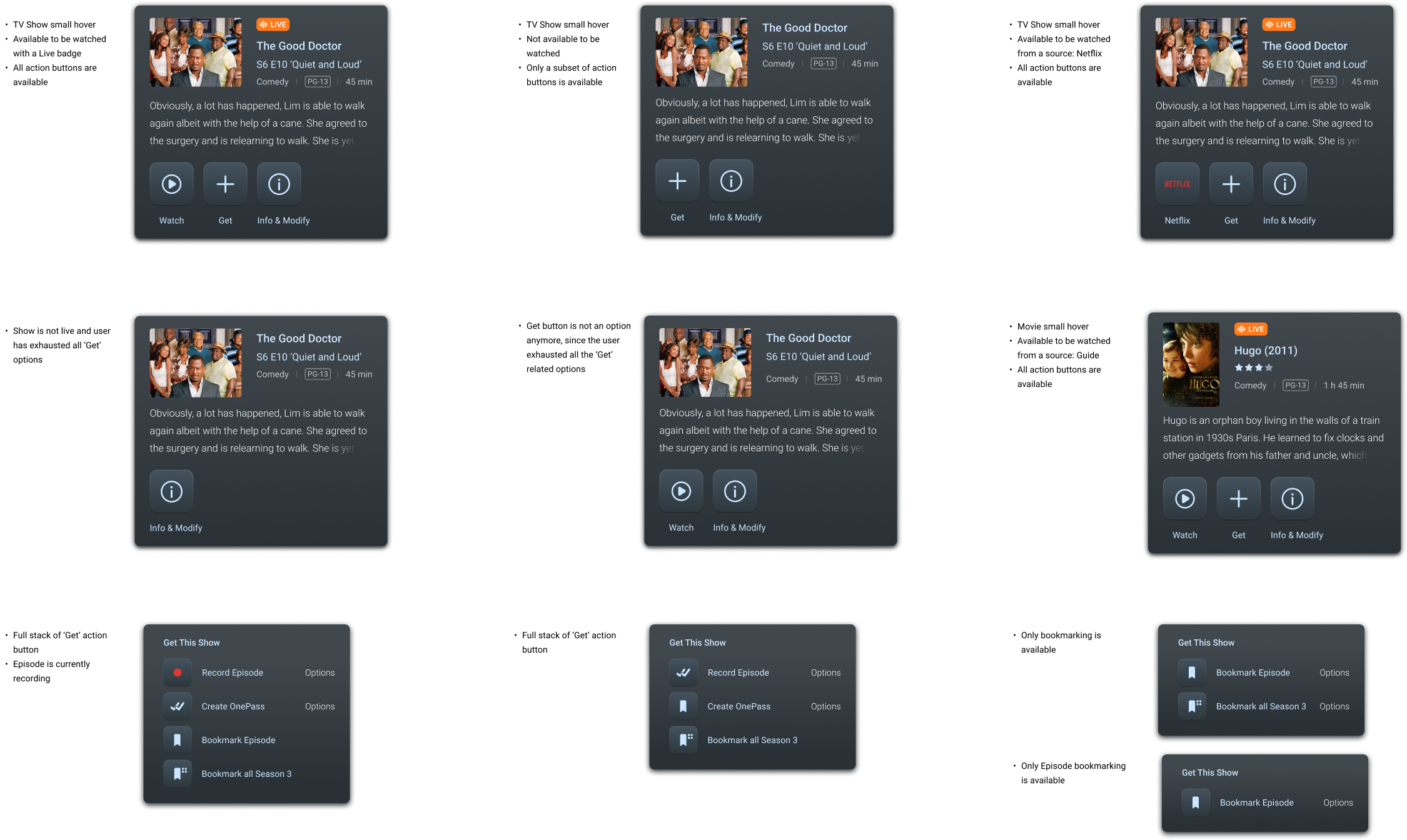 Since the Channel Info Card was just a part of the Guide redesign I was trying to keep all the pieces of larger redesign as simple, intuitive, and user friendly as I could.